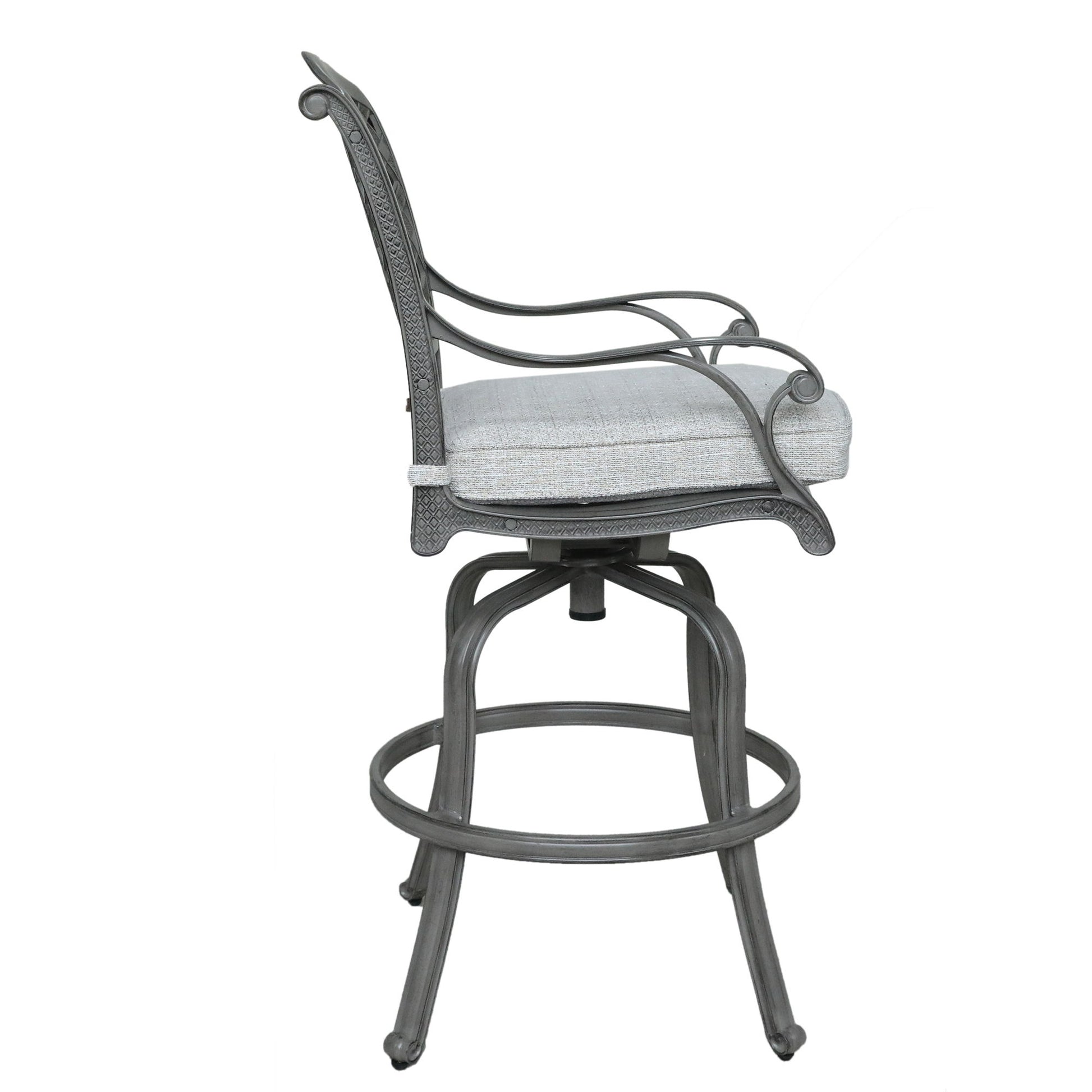 - Comfortable Cushioned Seating: Aluminum bar stools with included cushions for ultimate outdoor comfort.