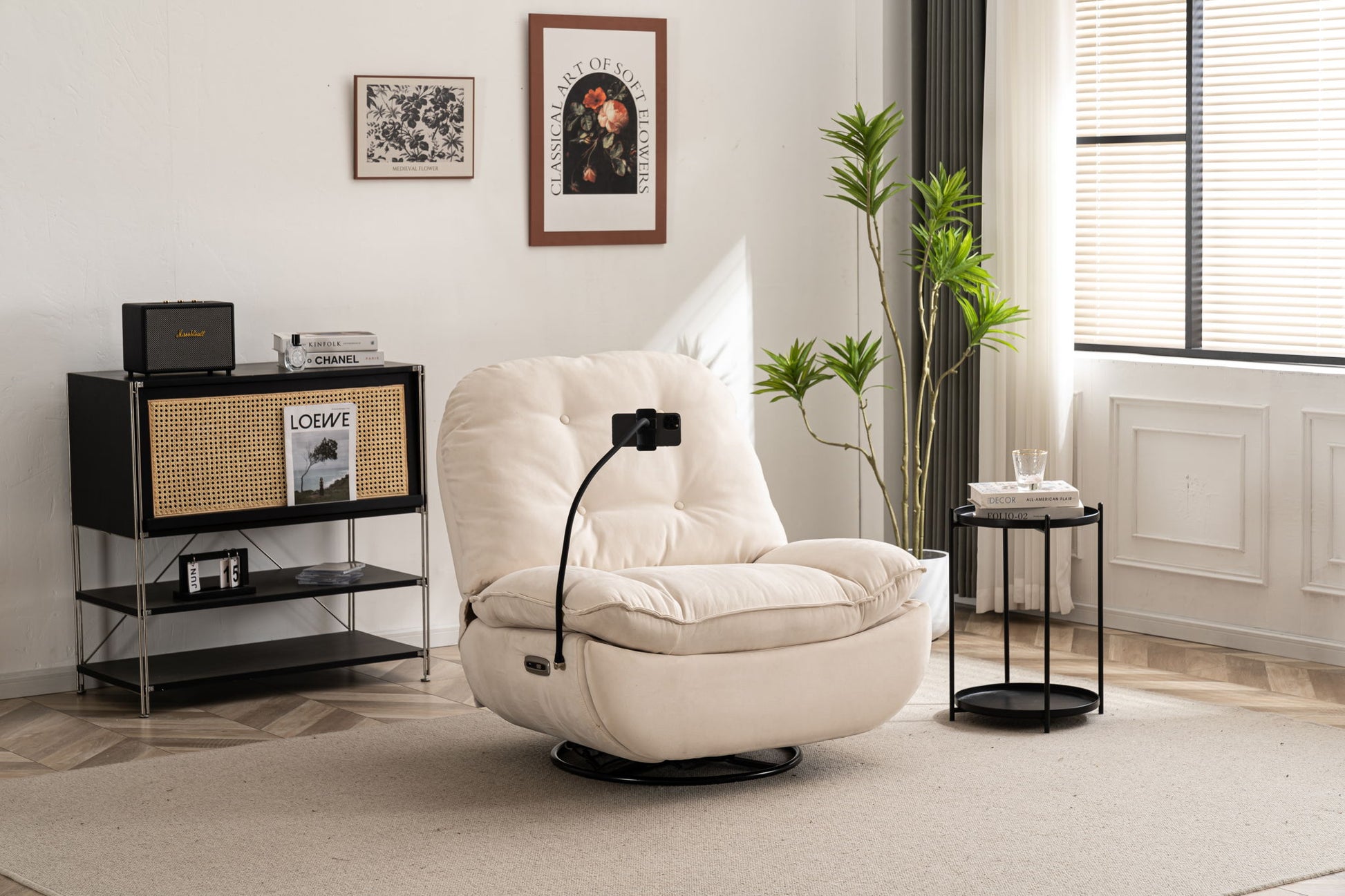 Power Recliner Swivel Glider USB Charger With Bluetooth Music Player Different Function Sleep Working Game And Leisure Model - Cream