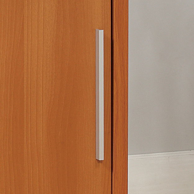- Metal Bar Handles: Equipped with long metal bar handles, this cabinet ensures a sleek design and comfortable grip for opening and closing the doors.