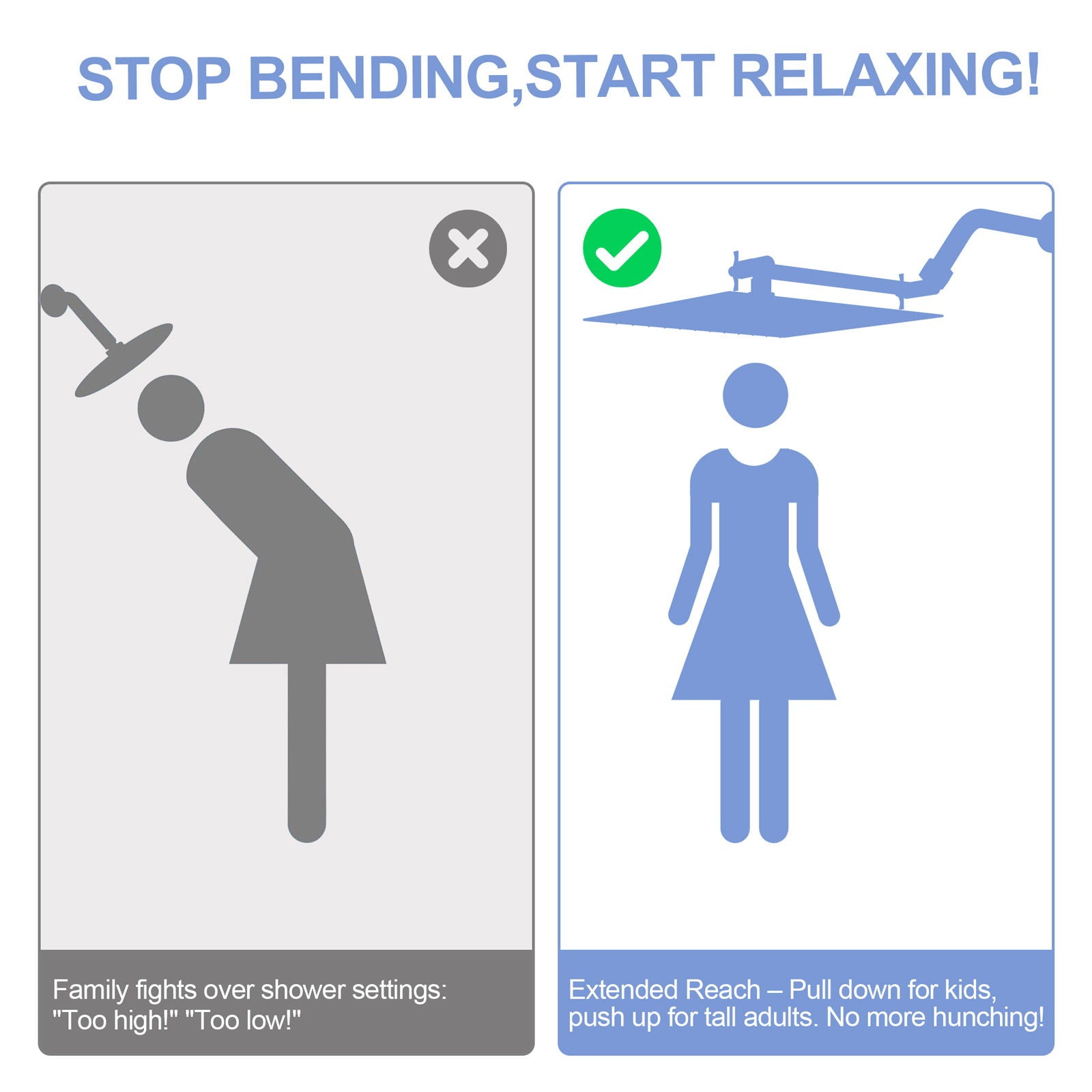- Enhanced Comfort: Extends distance from walls, preventing elbow bumps and enhancing showering ease.