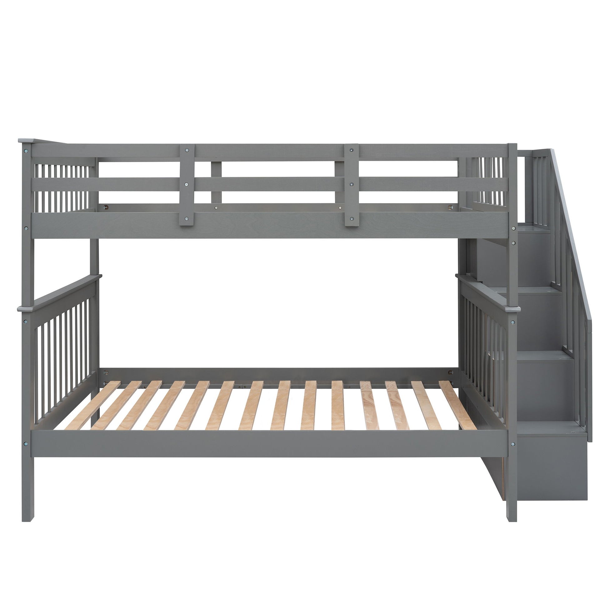 Twin Over Full Stairway Bunk Bed With Drawer, Storage And Guard Rail For Bedroom - Gray