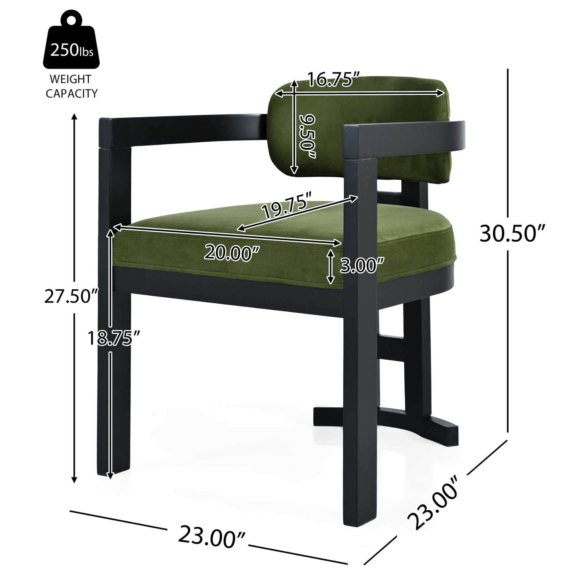 Elegant Upholstered Wood Dining Chair Set With Velvet (Set of 2) - Green / Black