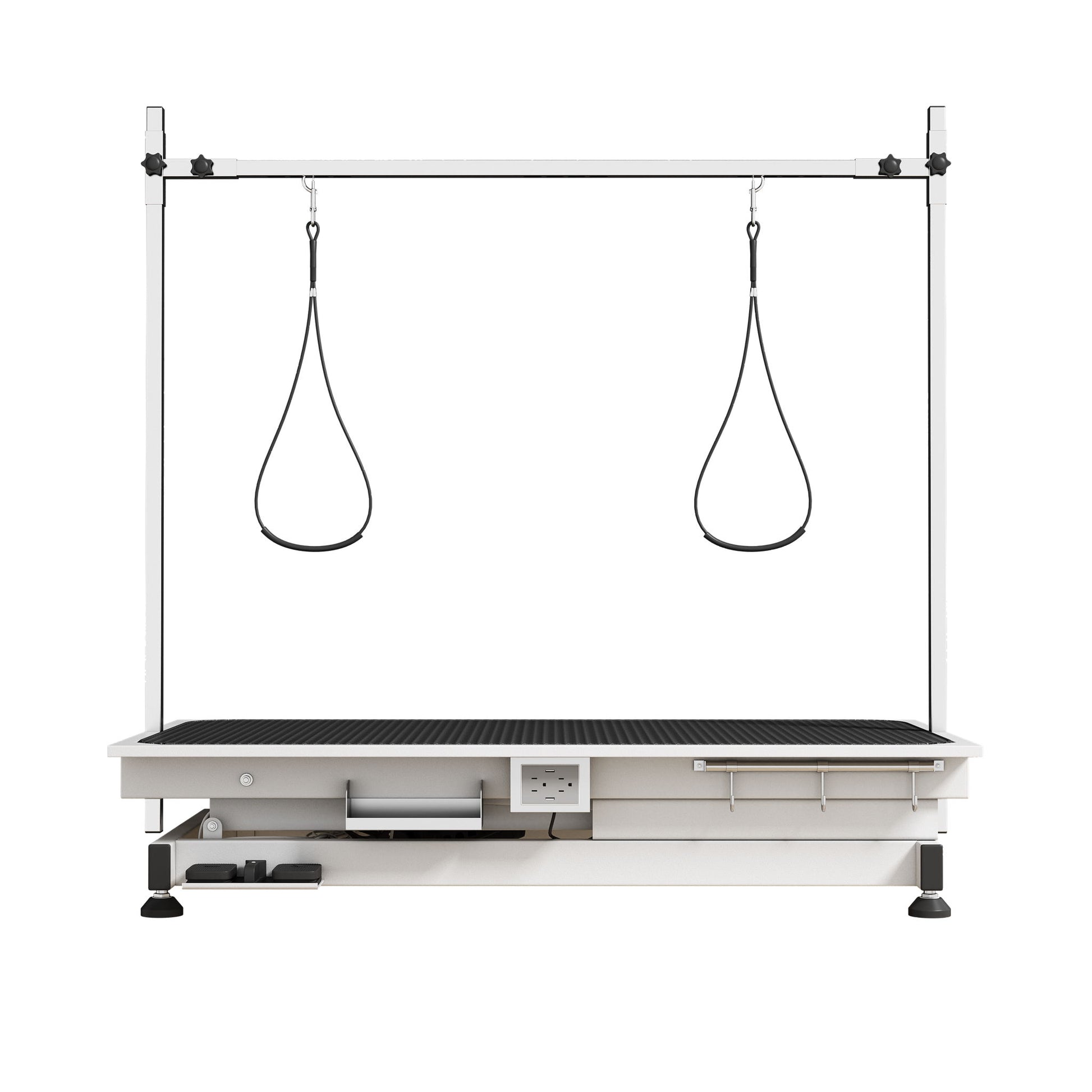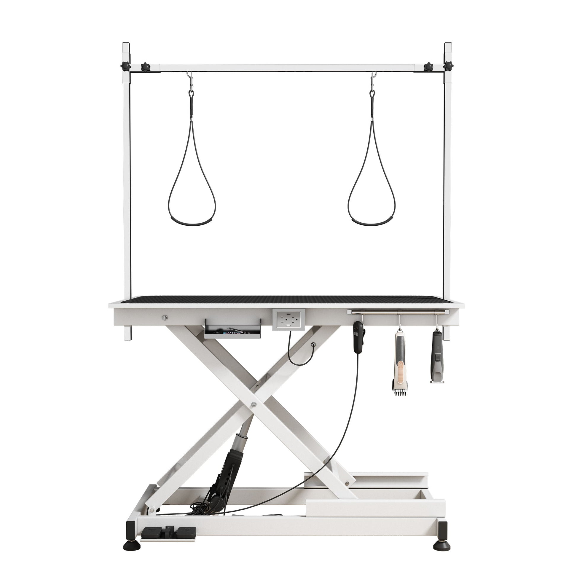 Super Deluxe Electric Pet Grooming Table, 110V / 220V Professional Groomer Recommend Adjustable Height From 9.4" To 39.37" - Black / White