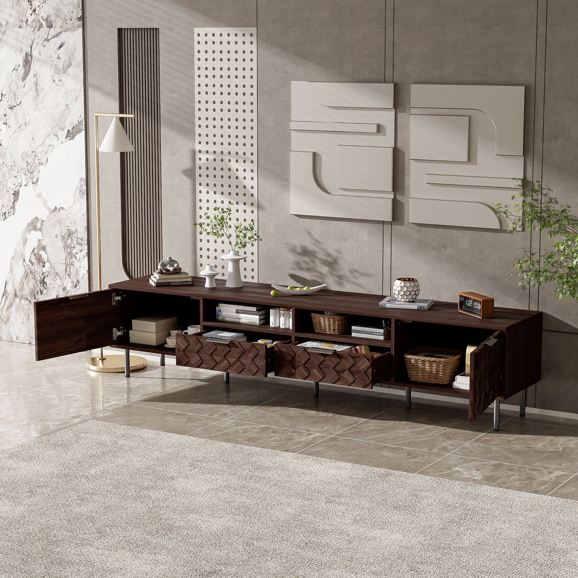 TV Stand For TVs Up To 85" With Closed Storage, Soft Closing Hinges, Living Room Entertainment Center - Walnut