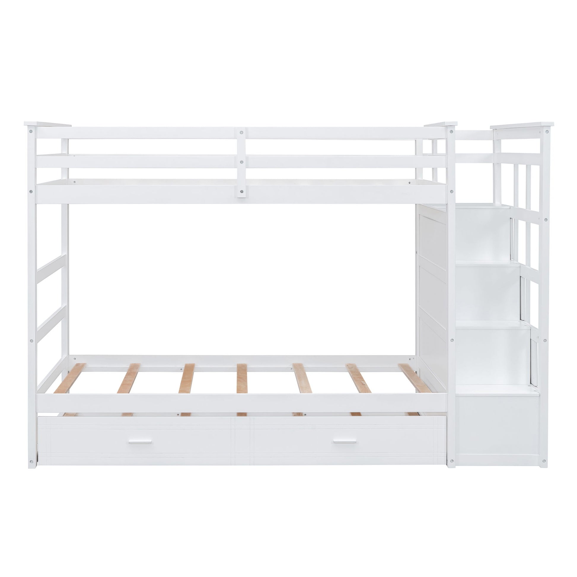 Twin Over Twin Bunk Bed With Trundle And Staircase - White