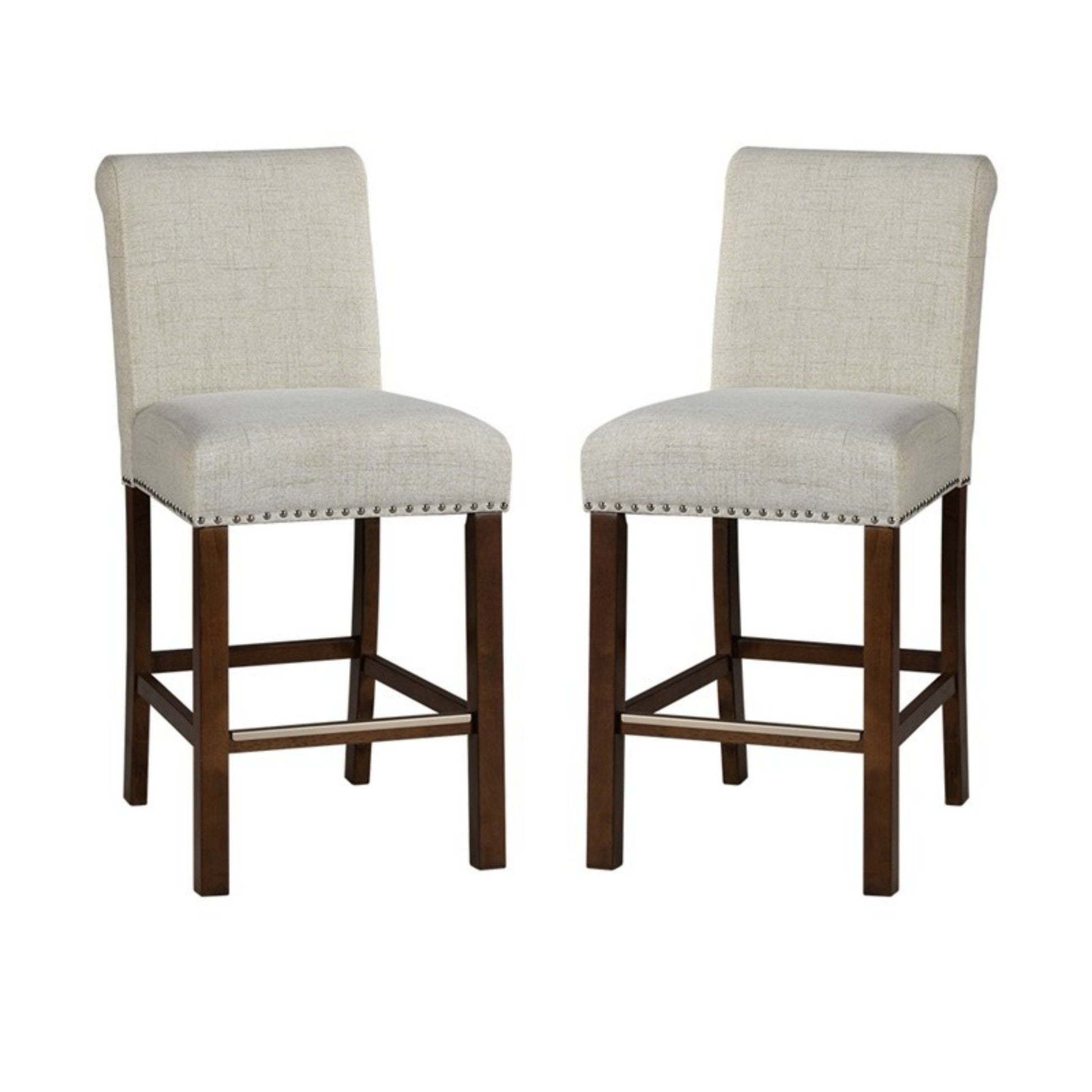 Counter Stool With Nailhead Trim (Set of 2) - Beige