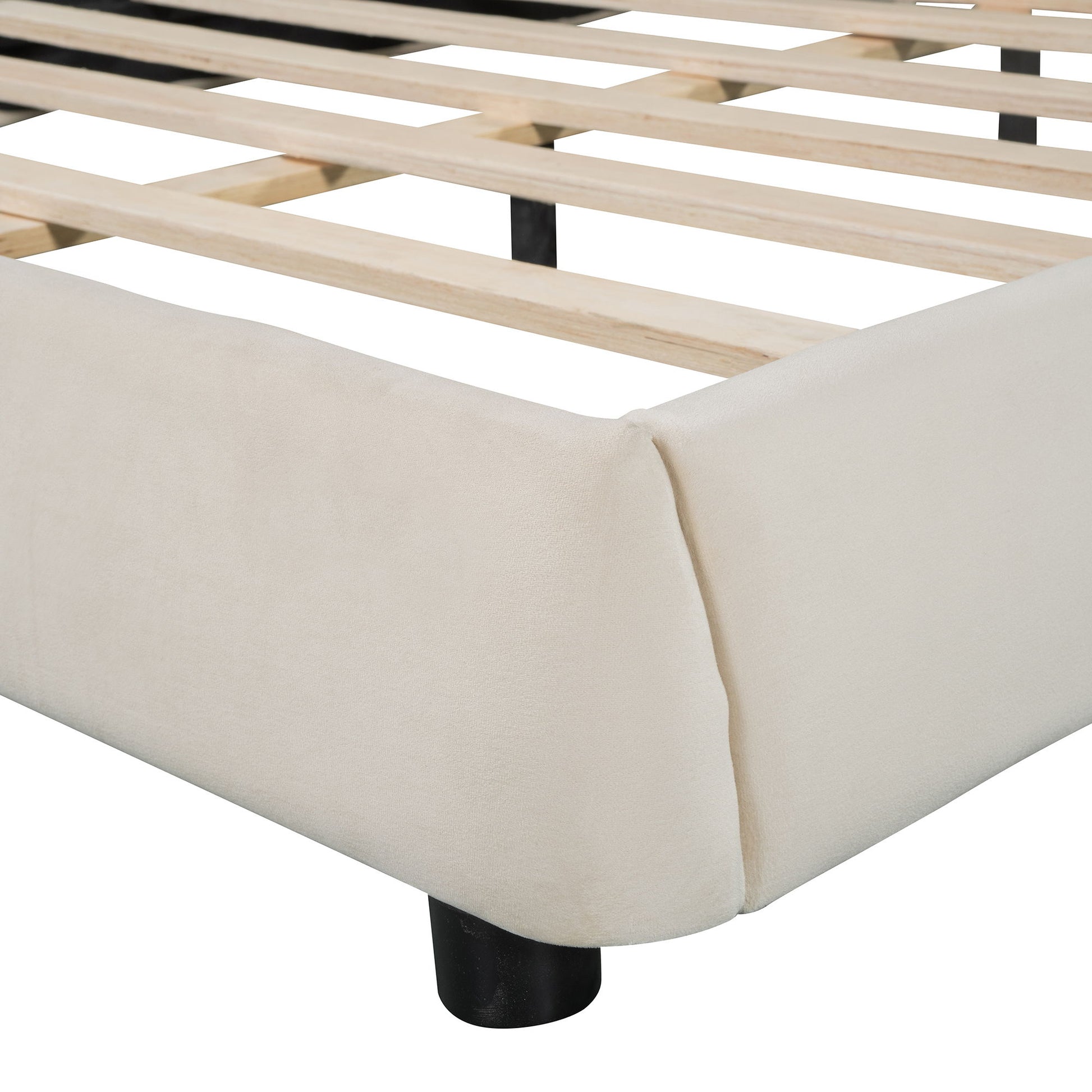 Queen Size Upholstered Platform Bed Frame And Stylish Curve Shaped Design - Beige