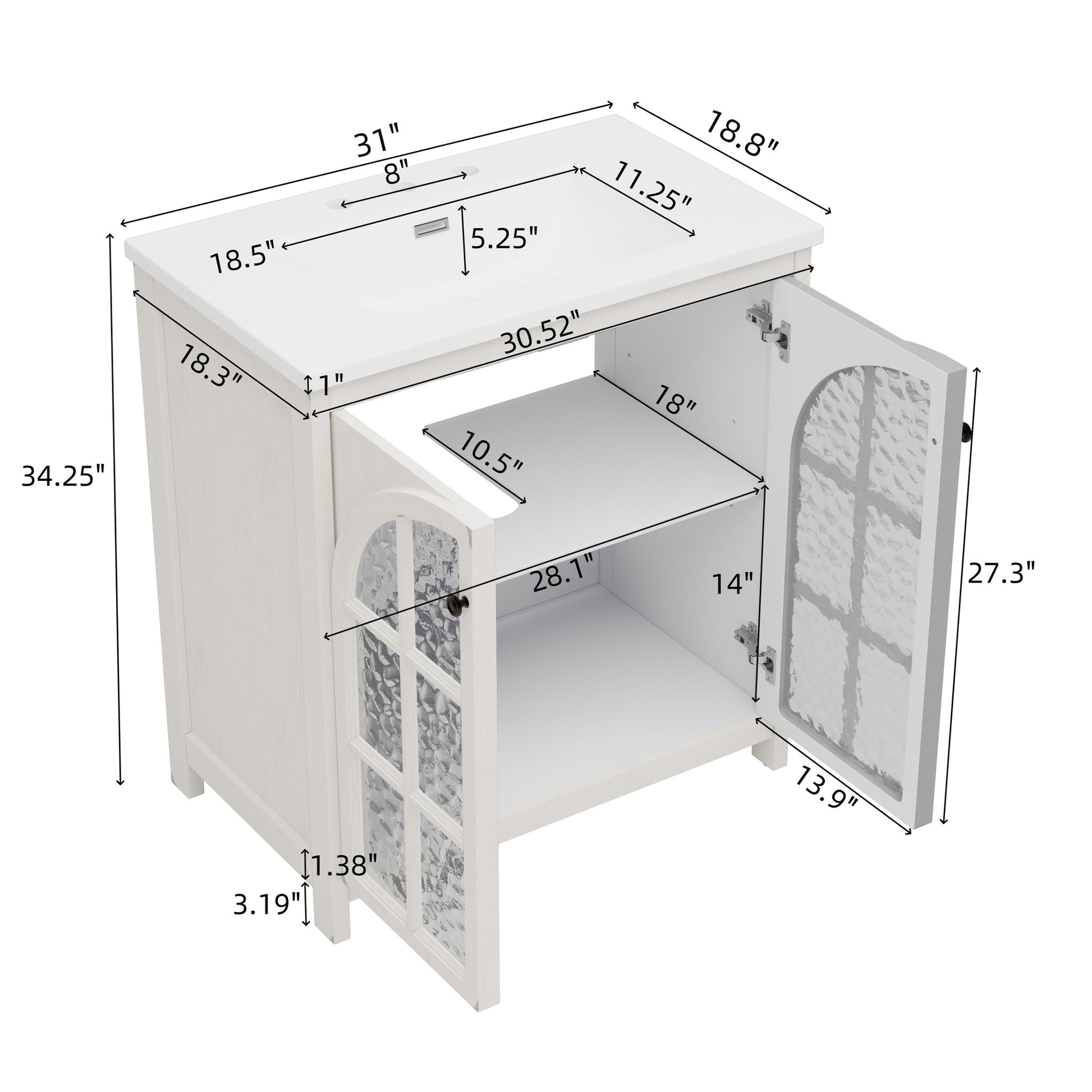 Bathroom Vanity With Sink, Soft Closing Doors - Antique White